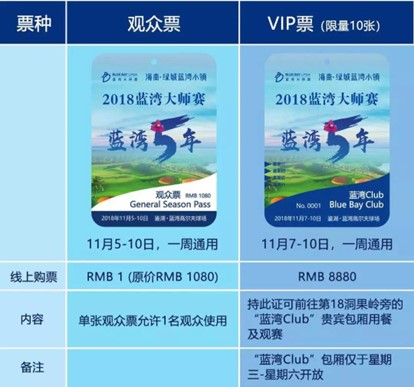 2018蓝湾大师赛,开赛在即!三种方式轻松购票: