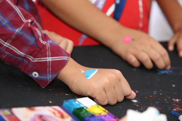 炫彩飞舞,蓝色海洋,美丽的瞬间总是短暂,虽然我们不能定格时间,但可以留下色彩和足迹。专业彩绘师和发型师,将你打造成球场上那道最靓丽的风景。