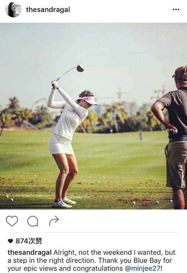 桑德拉•盖尔图文致谢蓝湾,同时表达对李旻智的祝贺