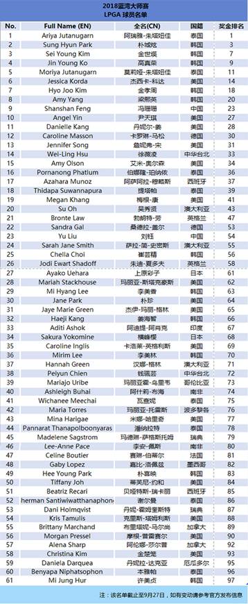 点击左下角『阅读原文』,查看今年蓝湾大师赛的LPGA参赛球员名单。