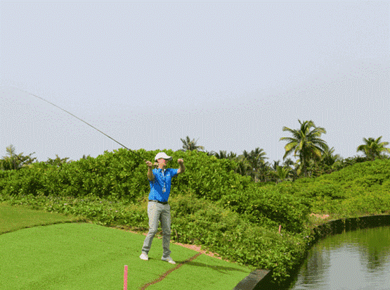 在蓝湾,柯思乐先生遇到了同为钓鱼『发烧友』的高董。在鉴湖·蓝湾高尔夫球场,共有6个漂亮至极的湖泊。可能是技痒了吧,2015年的一天,柯思乐先生突发奇想,他问高董:『这些湖里有鱼可钓吗?』然后,他们竟然真的就在高尔夫球场钓鱼了!