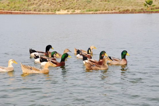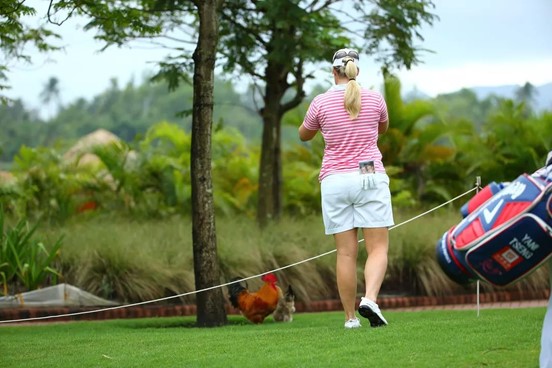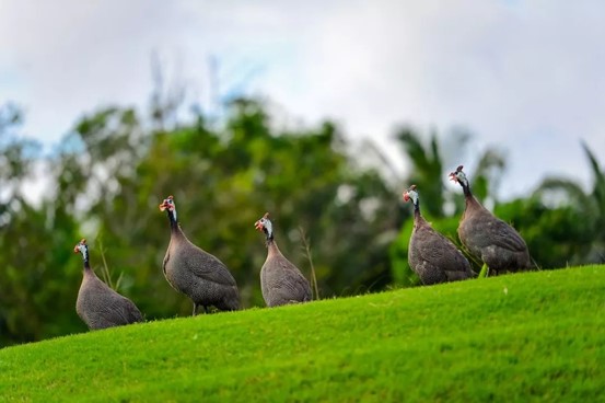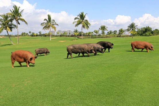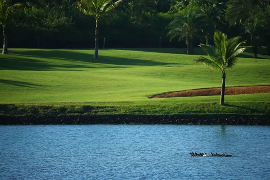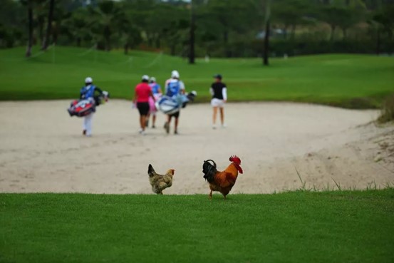鉴湖·蓝湾高尔夫球会的一个重要理念是『生态蓝湾』,有道是『生态蓝湾高球飞,青草流水鱼儿肥!』在蓝湾球会,天上飞的、地上走的、水里游的,各种萌萌的小动物随时都有可能出现。这里有品种优良、放养足足一年、仅在大赛期间供应的蓝湾宝贝猪;个大味美、大名鼎鼎的野生罗非鱼;在球场中散步的文昌鸡和加积鸭,正是蓝湾的好生态才令以它们为食材的蓝湾名菜有口皆碑。