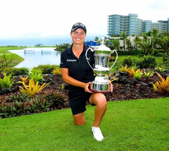 2015年决赛轮第18洞,中国姑娘林希妤在距洞杯85码处用50度挖起杆成功射下老鹰,并最终以并列第5的成绩突破个人在LPGA上的最好名次。